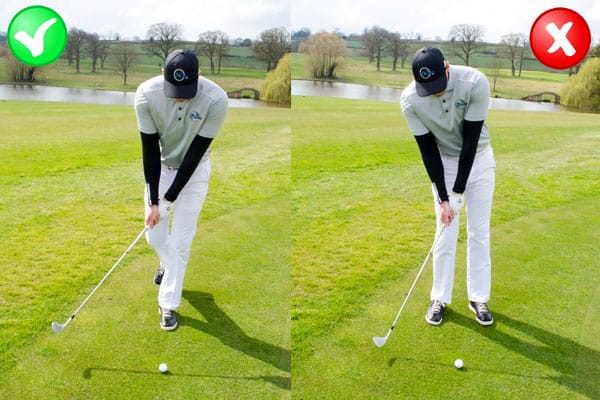 By placing just your lead leg on the ground not only will you have set your weight on your lead side but you will also know straight away if your head moves back excessively as you start your down swing as you will simply loose your balance. By keeping your balance on your lead side throughout the shot you contact will become just as good if not better than when you have two feet on the ground. I have students who I introduced this to ten years ago and they still hit shots standing on one leg.