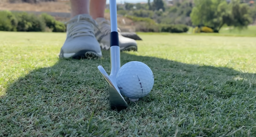 Contrary to popular belief, the sweet spot on an iron is actually quite low on the club face (see the photo below). So teeing it too high can cause huge problems when it comes to getting on those par 3’s in reg.