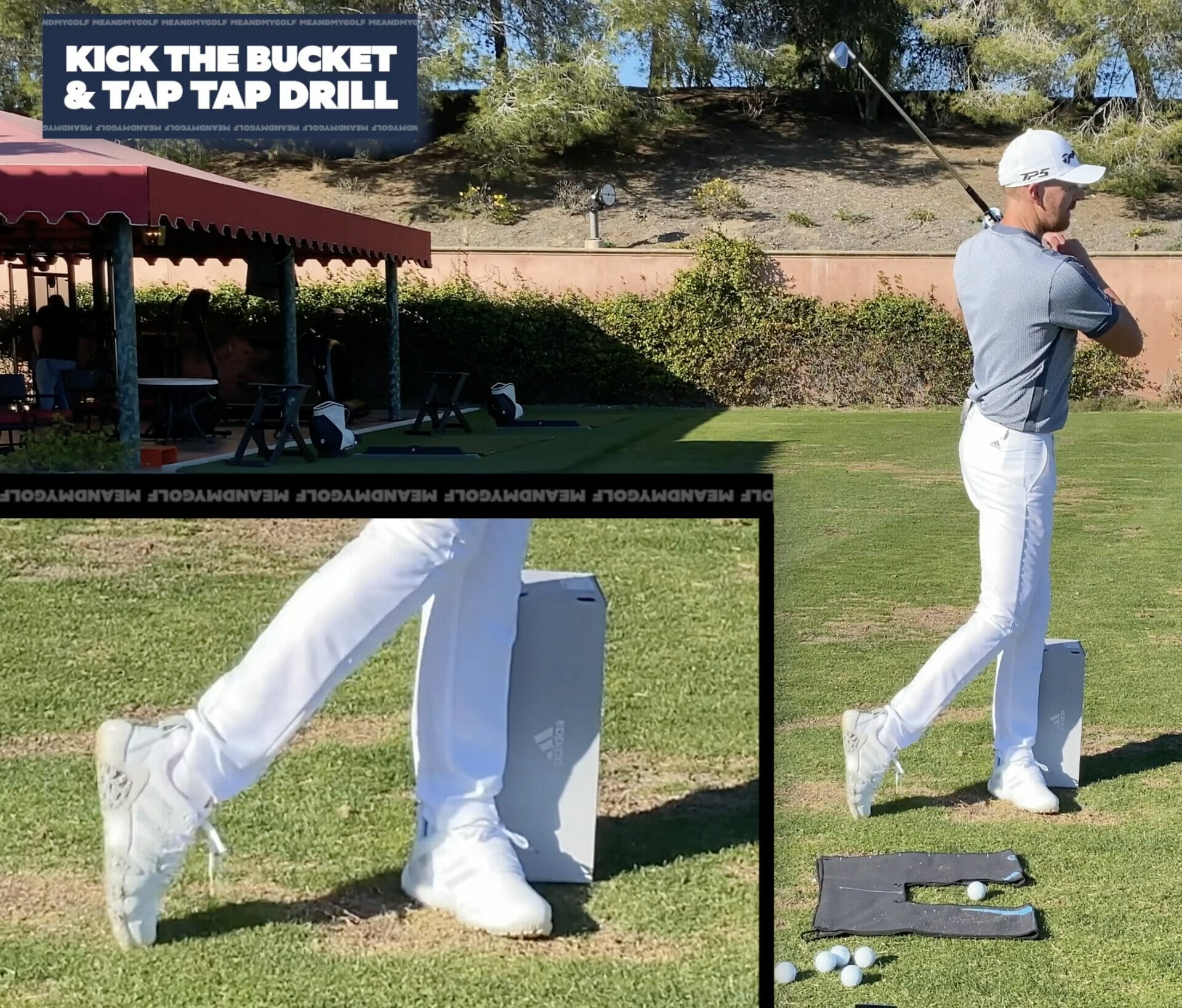 Once you have the hand of the bucket drill, we want you to add in what we call a ‘tap tap’ drill too. Once you move through impact and into your follow-through, tap the toes of your trail leg down into the floor as they get into their follow-through position.